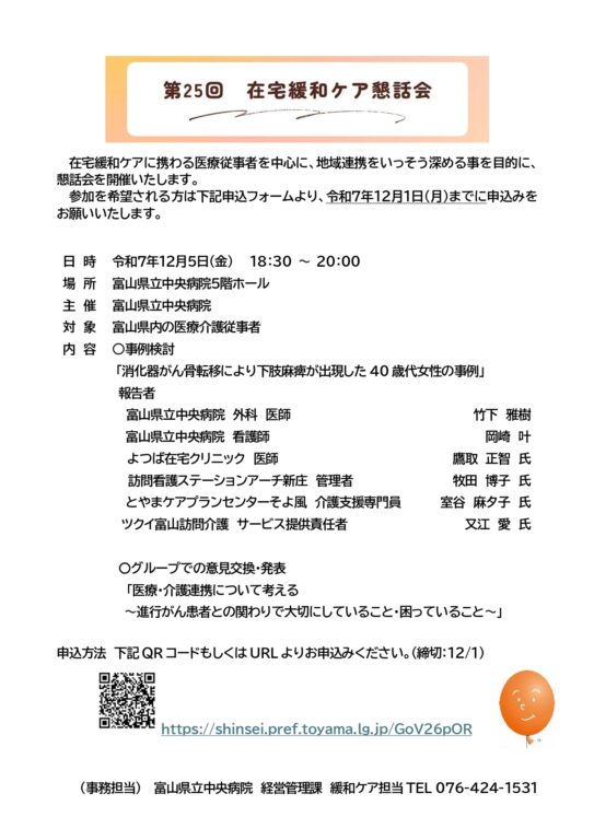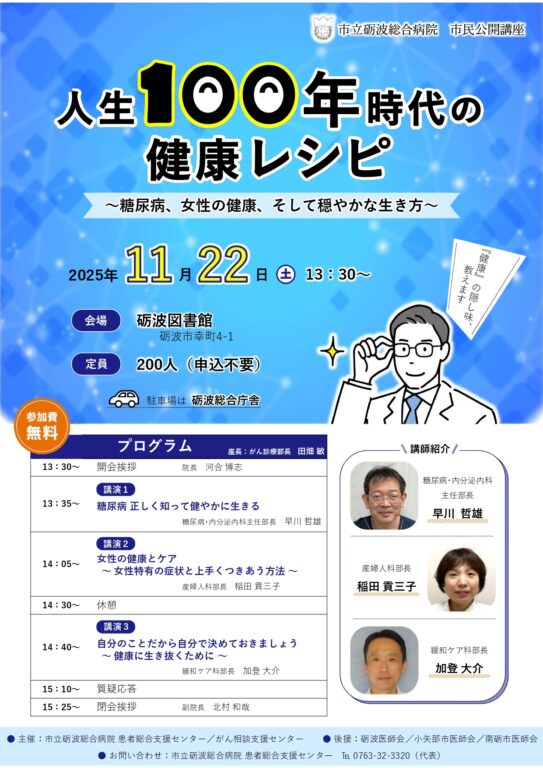 富山県では、がん医療水準の均てん化を促進する上で中心的な役割を担うがん診療連携拠点病院を積極的に整備することとし、県内の4つの二次医療圏すべてにおいて、1か所ないし2か所以上の病院が指定を受けています。